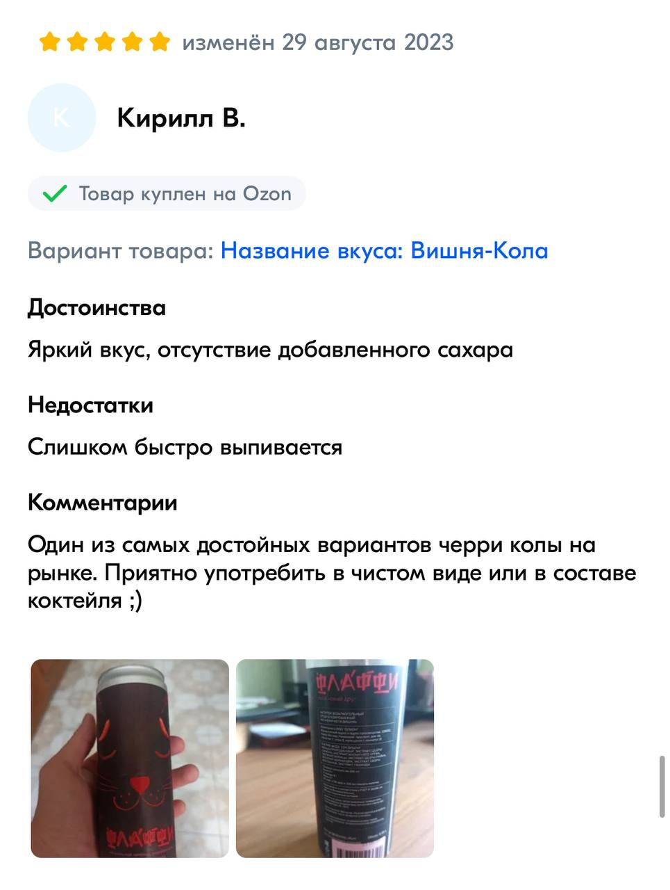 СОСТАВ: ВОДА, СОК ВИШНЕВЫЙ, ЭКСТРАКТ ВАНИЛИ